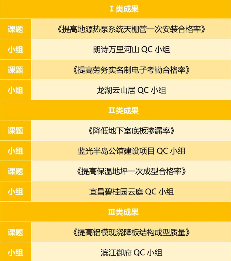 近日,武漢建筑業協會公布《武漢地區建筑業2022年優秀QC成果獲獎名單》,總承包公司發布的5項成果入選,其中,Ⅰ類成果2項、Ⅱ類成果2項、Ⅲ類成果1項。